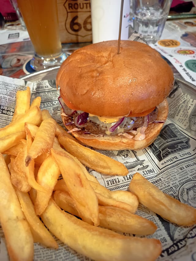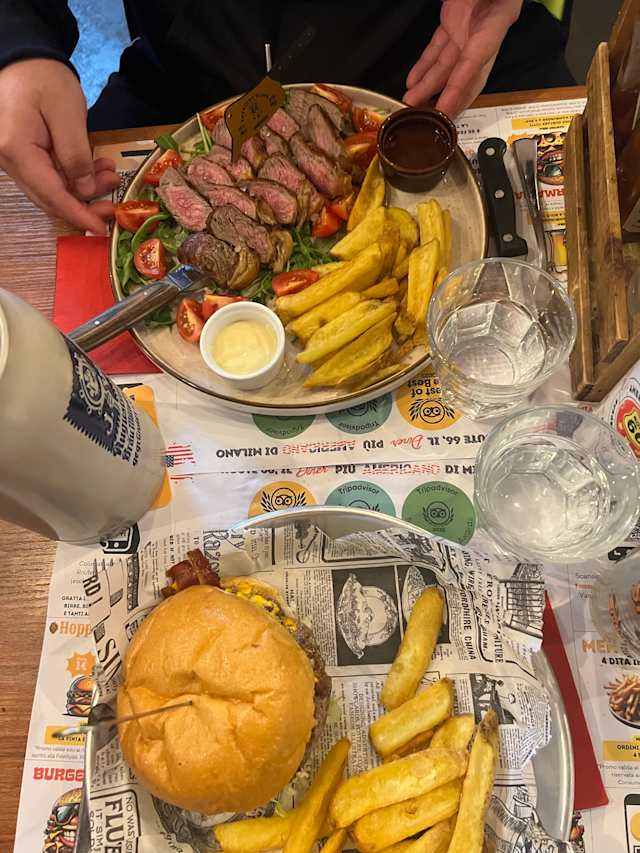 10/10we ordered route 66 burger, pulled pork & cheese burger.. we would say... it's the tastiest & best burger we ate so far here in Milano. But we would suggest to change the paper liner of the plate to more robust one, coz once the sauce touches the paper and you scrape it, it goes together and you might ate it.. we will definitely come back to try some more.. great ambience & excellent service...!