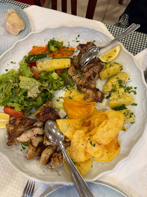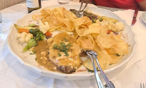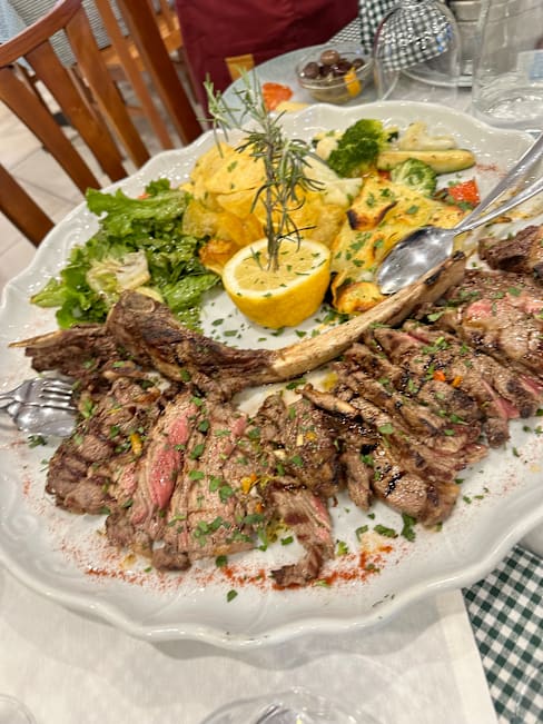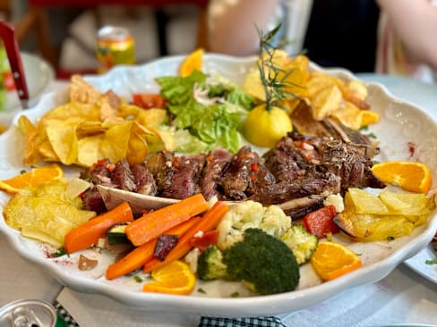 8/10Food was good in average. We order one apetizer of octopus and srimps on bread with a tasty sauce,, and 2 different steaks who came on a big dish with salad and french fries. Steaks were not very soft, but we enjoyed the meal.