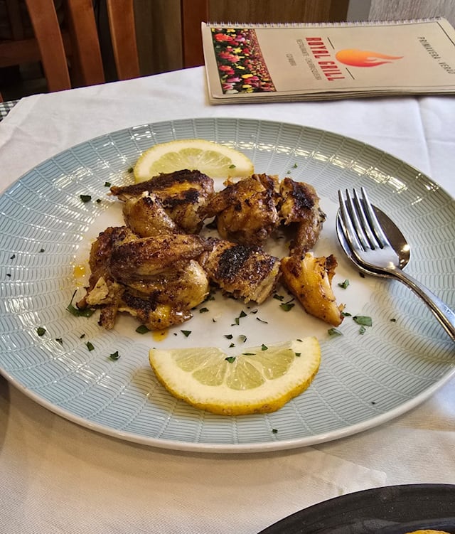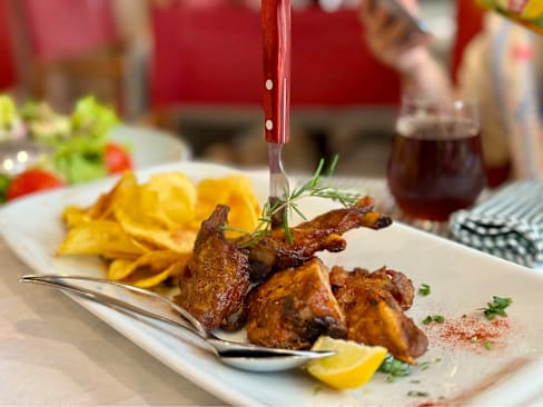 9/10Food was excellent, we had black pork and piri piri chicken, portions were generous, loved the chips and the Royal trifle dessert was yummy as was the cappuccino, our server was very attentive. The red and White House wine from the Duro Valley was also very good. Our server was also excellent. We came in very hungry so we were grateful for the small plate of sausages, cheeses and olives with bread to start that was presented to us