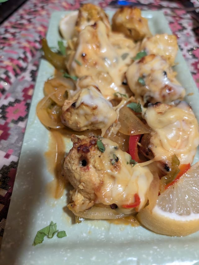 8.5/10Everything we ordered was delicious, momos, poddadoms chutneys. Ginger chicken, butter chicken ,Chicken tikka masala, garlic naan,perswari naan and pilau rice. All really good and plentiful
