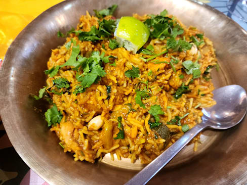 10/10The food here was excellent, I left feeling sated rather than stuffed (we shared three starters between two, samosa, momos and raita, followed by two mains, one rice and one naan). The service was very good, warm and welcoming but also chatty and friendly. I would definitely return.