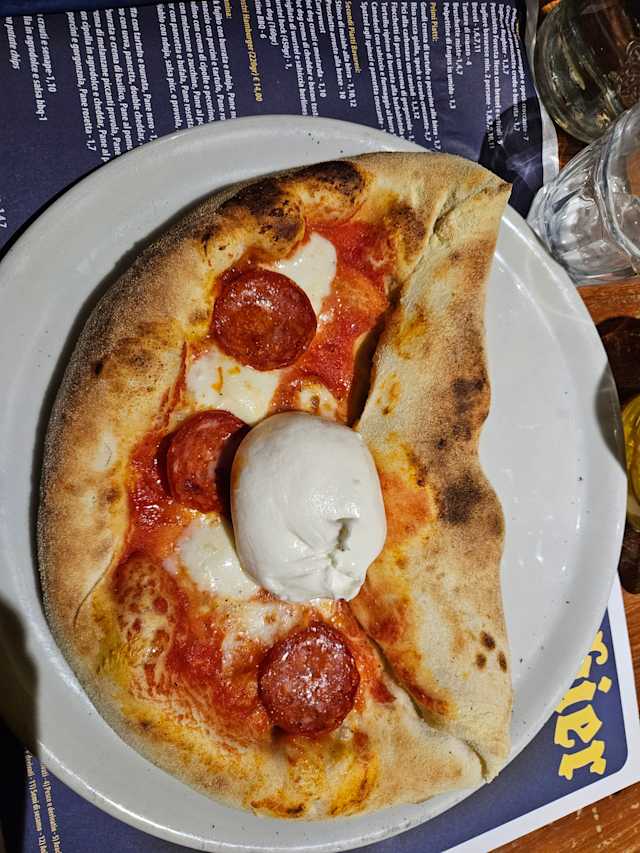 - Metà calzone e metà pizza bufala e burrata