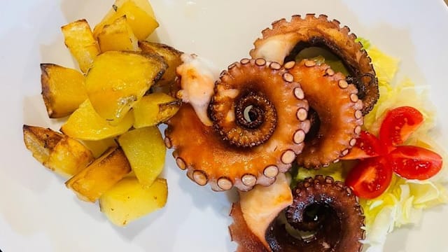 Tentacolo di polipo 200g cotto a bassa temperatura con le sue patate novelle, erbette della murgia e mousse al pecorino di moliterno
