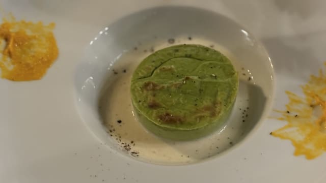 Chicca di patate con pesto fatto in casa cozze e polvere di menta