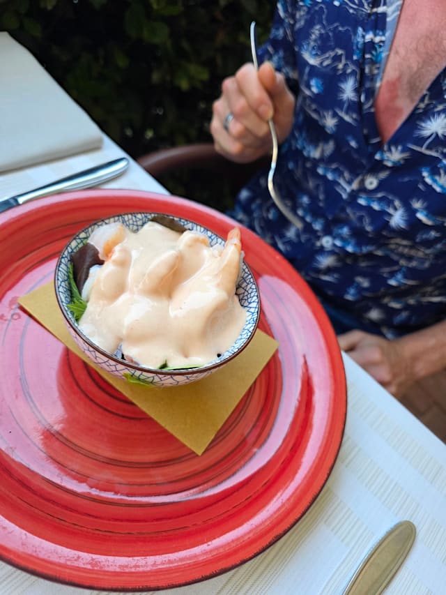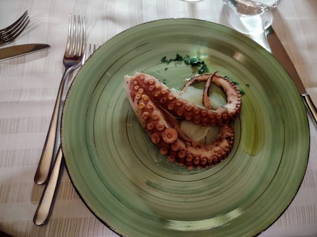 6.5/10This restaurant was about a 25 minute walk from Peschiera, the tables an restaurant were lated out nicely. Had a great menu, my food was very good which was calamari followed by monkfish as was my wife's starter of Tuna carpaccio. Unfortunately her main course of mussels was look warm / cold.