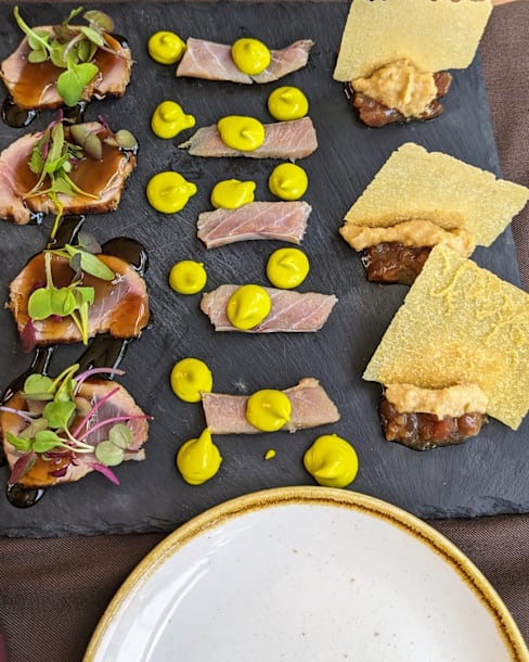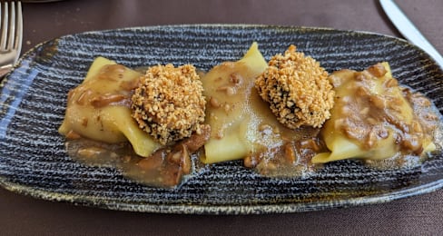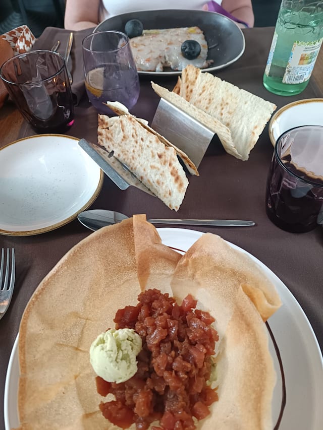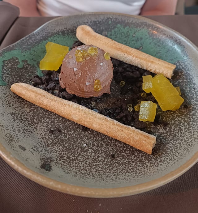 10/10+2Great surprise at Campdevànol. It is hard to believe there is such stylish high-end cusine in this area, as it is most common to more traditional Catalan cuusine. You have a -very imaginative named- a la carte menu and then you can go for a gastronomic set menú that includes few starters, main to choose and desserts to chose for 35€. Everything was extremely good and very well presented. There is also a kids menu for 13€. They do accept dogs at the terrace (which I prefer if the weather allows. Service is exquisite- Michelin star level. Definitely a hidden gem.