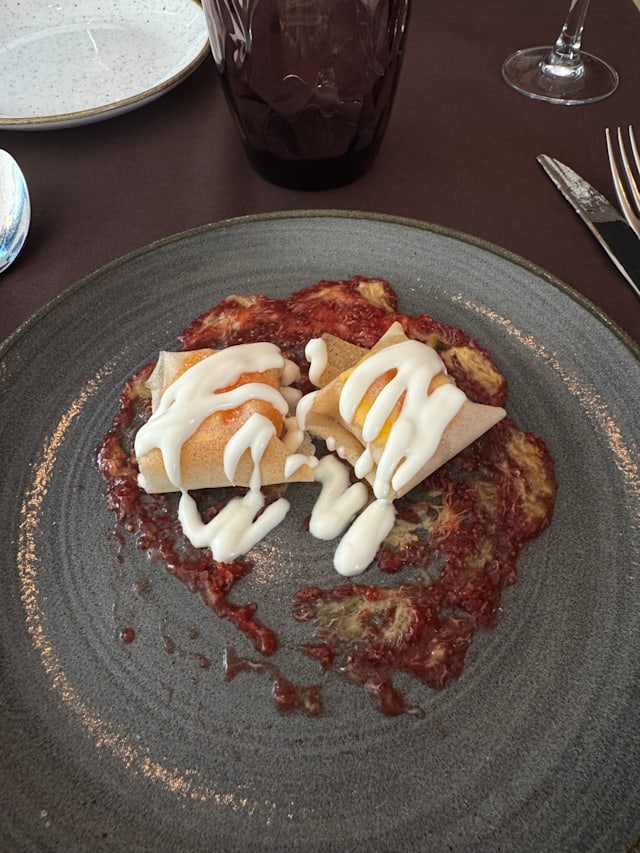 10/10+2Great surprise at Campdevànol. It is hard to believe there is such stylish high-end cusine in this area, as it is most common to more traditional Catalan cuusine. You have a -very imaginative named- a la carte menu and then you can go for a gastronomic set menú that includes few starters, main to choose and desserts to chose for 35€. Everything was extremely good and very well presented. There is also a kids menu for 13€. They do accept dogs at the terrace (which I prefer if the weather allows. Service is exquisite- Michelin star level. Definitely a hidden gem.