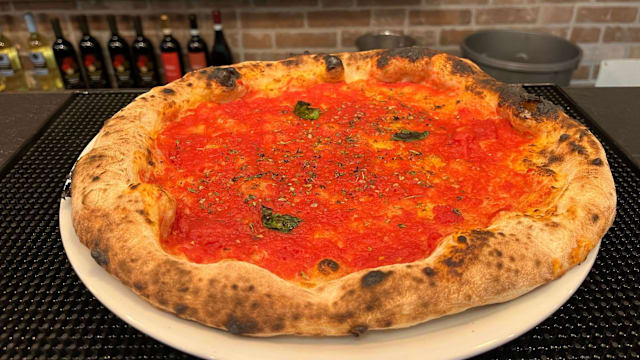 Ombra di pomodoro san marzano, pomodorino del piennolo, mozzarella di bufala, origano e olio all'aglio