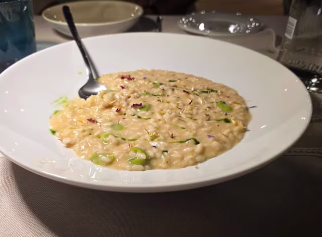 - Raviolo di giuncata con gambero rosa, salicornia, mandorla salata e lime