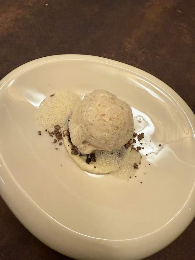- Gelato al finocchio di mare, sedano fermentato, melassa al limone bruciato, meringa alla lattuga di mare