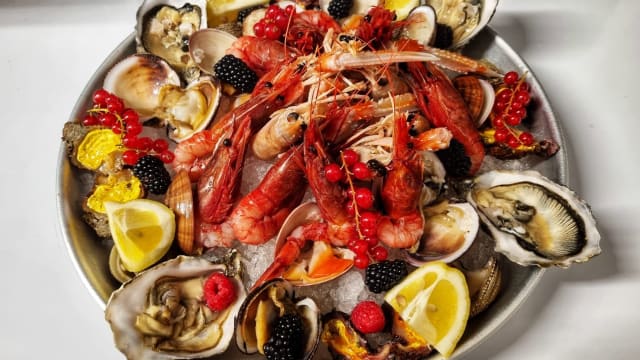(4 Ostriche, 4 scampi, 3 gamberi rossi e frutti di mare stagionali)
