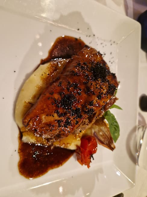 6.5/10We were seated outside (after requesting this when booking)So cozy atmosphere! Service was also good. Had the carpaccio as a starter, so delicious. But when it came to the main course..My husband had the filetto di manzo. It came out still "bleeding", not so fresh for nice restaurang. (This filetto we didn't get 20% off-stood in italien, so we didn't know) I had the casserole with seafood. Good base. But when you have a mix if everything in a bowl you expect them to take away the bones in the fish. So big minus for the main course! Had a local redwine to share-also price worth and good. Overall I think Cagliari have better restaurants to visit