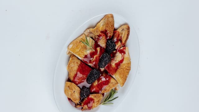 Galletto accompagnato da una raffinata salsa agrodolce a base di more e melograno