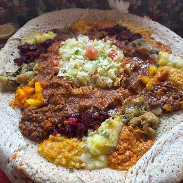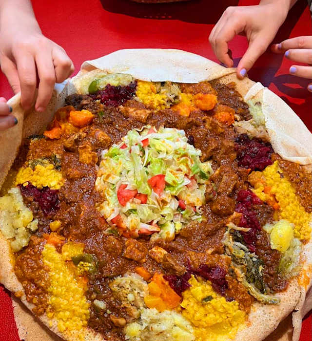 - "Minchet" / carne picada (injera pan etíope, cuscus o arroz)
