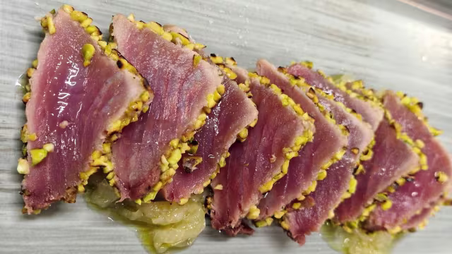 - Linguine con pesto di pistacchio e tartare di gambero rosso