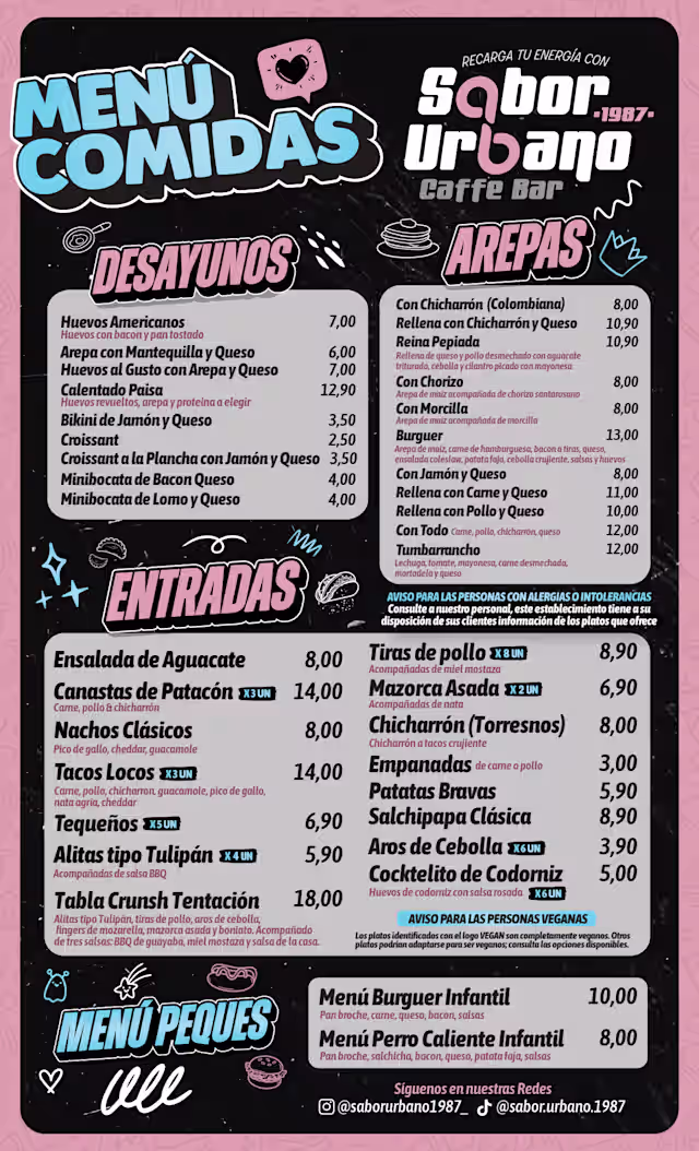 Sabor Urbano 1987 no es solo un bar, es un punto de encuentro donde la cultura latina se mezcla con la vibra callejera y el ritmo urbano. Un espacio donde los cócteles tropicales, las cervezas bien frías y las tapas con estilo propio se disfrutan al son de la música