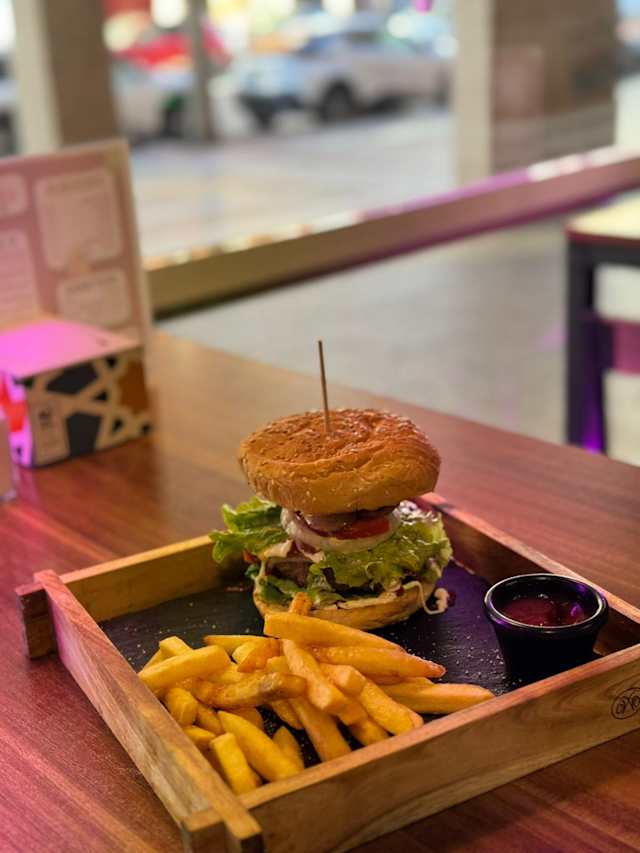 - Doble carne, jamón, queso, kepchut, mayonesa, miel mostaza, lechug, tomate y cebolla