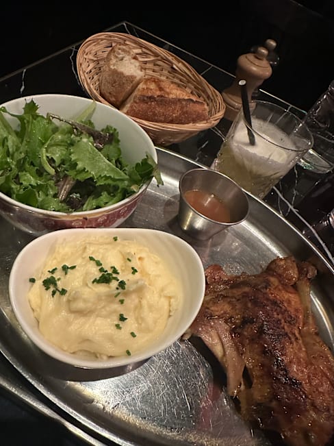 10/10Excellent service, ambiance, food. One of us had the Roasted Chicken which was delicious, moist and flavorful. Came with Homemade French Fries and a wonderful Misto Salad. The other person had the Pork Ribs which he remarked how delicious they were with every bite, very moist and tasty. We both had the Onion Soup which has been the best out of 3 so far. I would highly recommend this restaurant, you will not be disappointed.