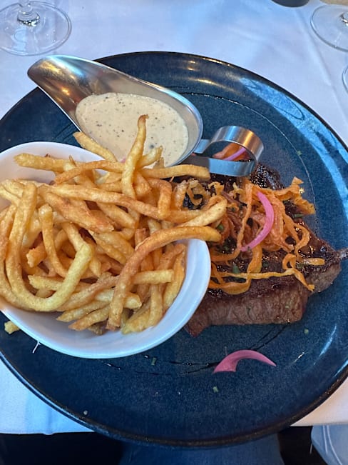 10/10I had the most wonderful meal at Sacre Frenchy. It was a beautiful evening so I sat on the patio. Arthur was my server and he was very attentive. I wanted to enjoy my champagne before ordering and he came back at the perfect time. I had the steak dinner and it was cooked to perfection. The green pepper sauce was delicious. Arthur was attentive and kind. I would come back next time I’m in town.