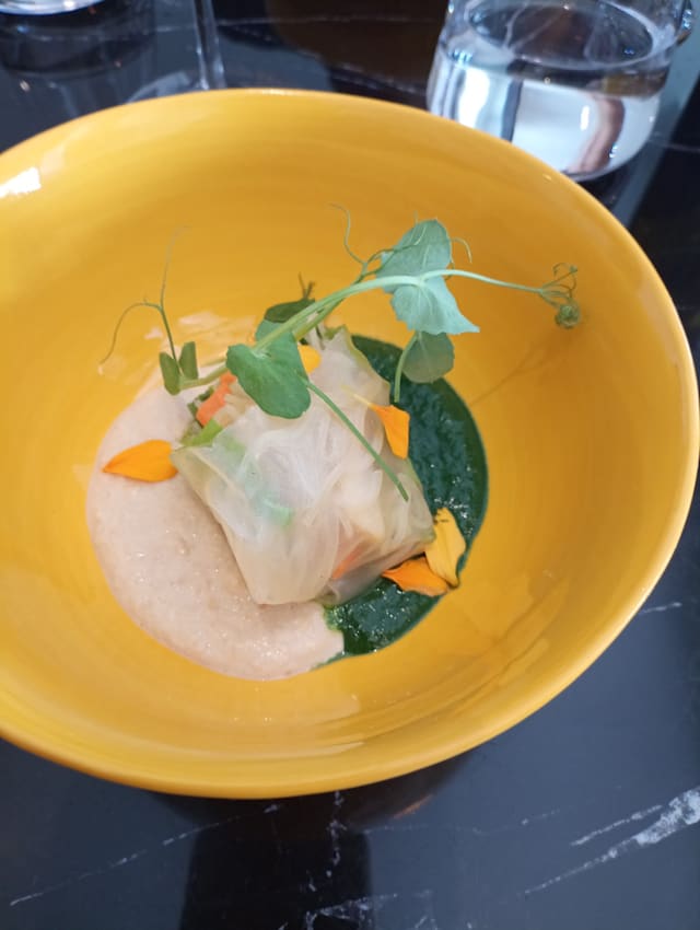 7.5/10Food was exceptional, the waitress was rude and inadequate though. It’s a shame, for instance she pushed us to get the fewer courses menu just to finish early: the cheapest one, lol! In general she was just pushy and not welcoming, she didn’t even take the time to explain correctly the concept of the restaurant, its history or even the dishes. This restaurant has a lot of potential and the chef came out to greet every single table after the meal on top of that she -the chef- was super nice. Service can be hit and miss in Paris, but the girl in question should understand that she is not working for a bistrot and should be part of the fine dining experience. Only 4 tables were occupied, stress can’t be part of the picture.