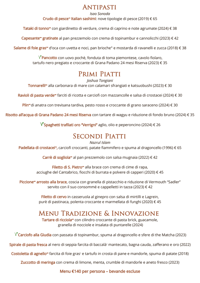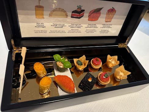10/10+7What a pleasure to dine here! We were welcomed by Chef Claudio himself and were delighted by the evening experience. Our host was the very accommodating Georgia and our wonderful somm was Mario. I am allergic to nuts and shellfish and they had no issue making adjustments to their Creative Menu. It was a 10/10 for us all the way through and our favorite meal in all of Milan during our trip.