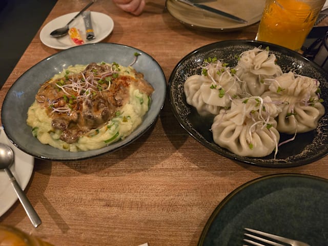 10/10Good food (had the khinkali, chicken Kiev, potato pancakes, and beef stroganoff) and friendly service, thank you!
