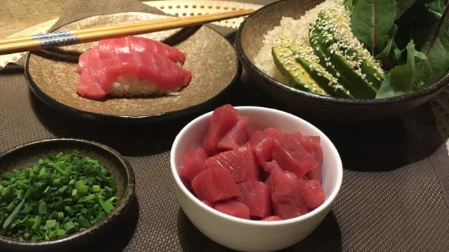 Portofino (4 tapas di riso, gamberi crudi, tartara di tonno rosso e tartufo nero)