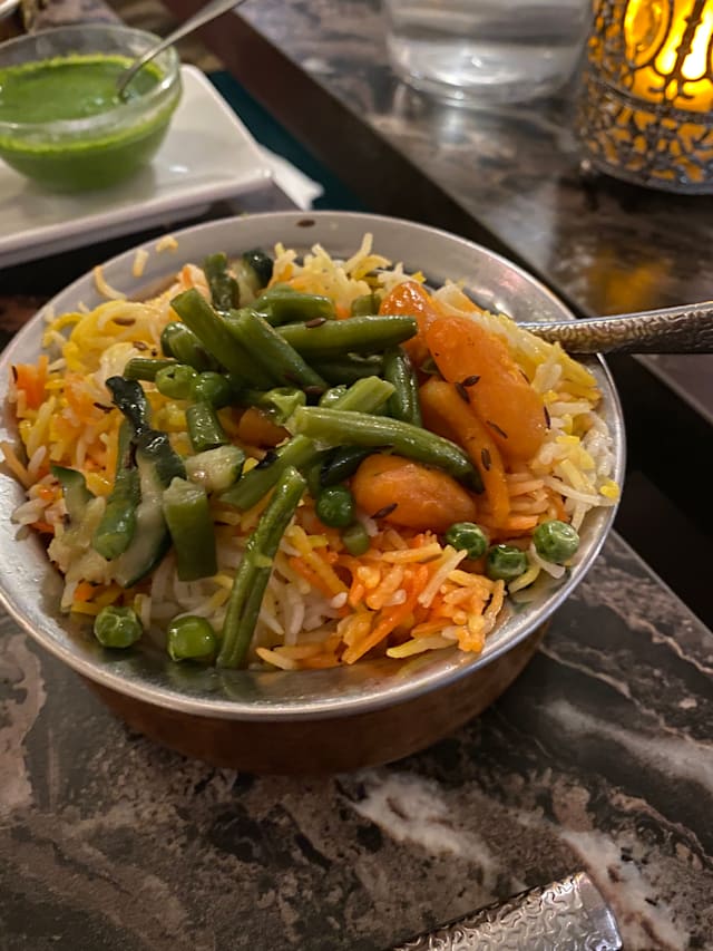 10/10Food was great and service was impeccable! The restaurant was beautiful and had some authentic Indian design elements, without looking like they're forcing it. Loved it!