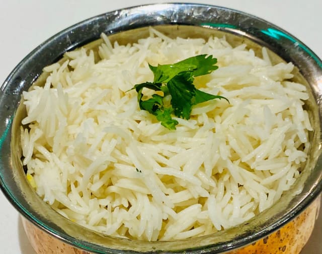 Riz basmati à la vapeur sauté avec épices et morceaux de poulet