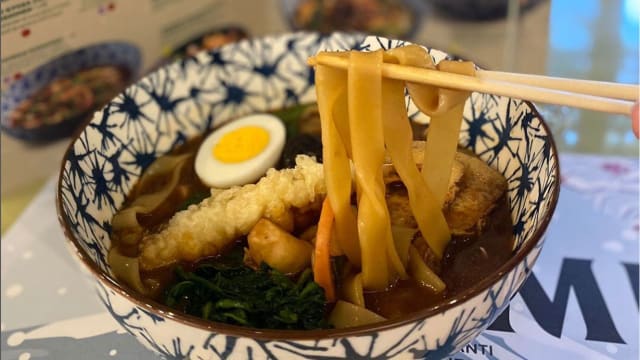 Udon caldi o freddi con tempura di verdure miste e gamberi