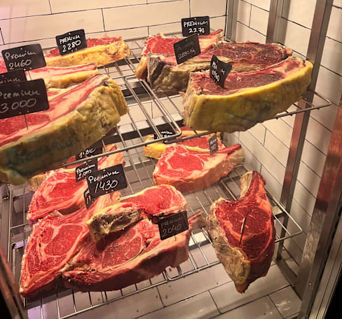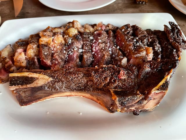 2.5/10I would caution against this place. There were two men and two women in our party. We requested small portions of meat and fish. We ended up with far too much of each. Our fish was €183 and the meat was €196. Both portions were far more than our table could eat. We only ate half of the fish. Of course we could not take it with us so it ended up in the trash. They served a tomahawk from a 12 year old dairy cow and bragged about the cut. That would never ever be a desirable cut in the US. In fact, I have never heard of it. The fish was prepared with oil, lemon and minimal seasoning. The service was absent. They charge by the gram so you have no control over portion size. All in all we felt very taken advantage of. A great deal of our food ended up in the garbage. We had two rounds of drinks. Our bill was close to €700 with tip. J. Be aware you will pay for an entire tomahawk and an entire fish with the size at their discretion.