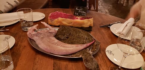 2.5/10I would caution against this place. There were two men and two women in our party. We requested small portions of meat and fish. We ended up with far too much of each. Our fish was €183 and the meat was €196. Both portions were far more than our table could eat. We only ate half of the fish. Of course we could not take it with us so it ended up in the trash. They served a tomahawk from a 12 year old dairy cow and bragged about the cut. That would never ever be a desirable cut in the US. In fact, I have never heard of it. The fish was prepared with oil, lemon and minimal seasoning. The service was absent. They charge by the gram so you have no control over portion size. All in all we felt very taken advantage of. A great deal of our food ended up in the garbage. We had two rounds of drinks. Our bill was close to €700 with tip. J. Be aware you will pay for an entire tomahawk and an entire fish with the size at their discretion.
