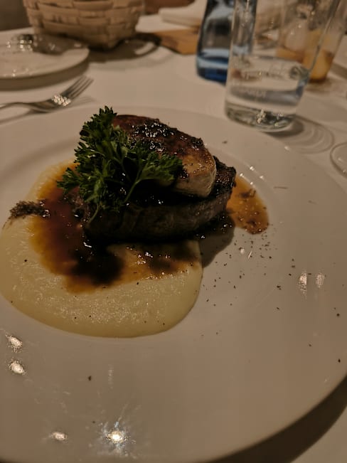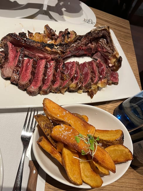 8.5/10We were on a Friday night, it was busy but we had a perfect round table for the five of us right by the window which we reserved one day before. Appetizers were very good, perfect cooked whole fish. The meat, a Bistecca 1000g was well presented but unfortunately the meat not stored long enough, it was quite chewy. Overall still a memorable evening, would go again.