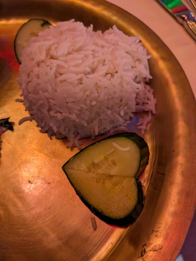5/10Went for dinner on a Monday night. At 10PM we were the only customers there and throughout the night. Our attendant Narayan was wonderful and attentive. As Indian's we were severely disappointed with the taste of the food. It was very mediocre and did not reflect authenticity. The ambiance was very outdated and the lighting so dim it did not help the case of the indisguishable dishes. We ordered the gulab jamun for dessert and the kitchen staff had the audacity to serve it to us cold! We had to request our waiter to have it heated up. There is a lot of improvement to be made if you want to stay in business guys.