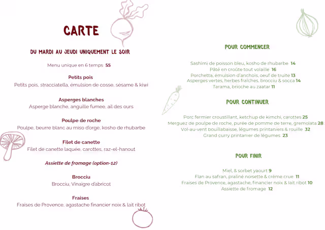 Menu unique en 6 temps€55 per guest