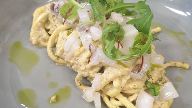 - Fettuccine fatte in casa ricciola, pachino, basilico e scorza di limone