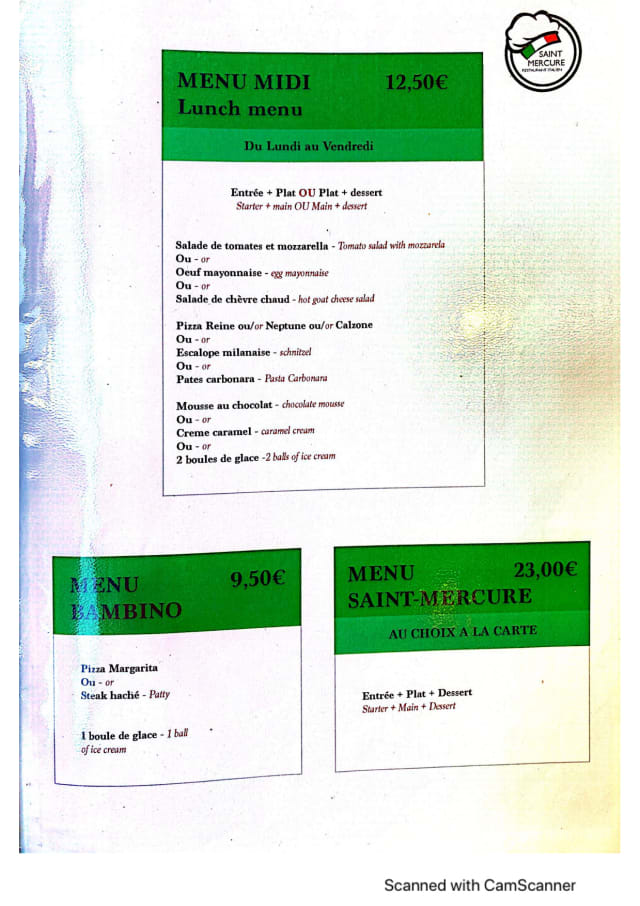 9/10This is my first time writing a review and I have the pleasure to write about my wonderful experience at Saint Mercure! My husband and I booked on thefork so our meal was 40% off. By the end of the night we felt bad that our meal was discounted because the prices were already reasonable and the food quality and portions were amazing! Not to mention the customer service was great. I highly suggest that you visit here. The food options are numerous (and I'm a VERY picky eater). I had the trio de poisson with scallops, fish and shrimp. It was great. We will be back again!