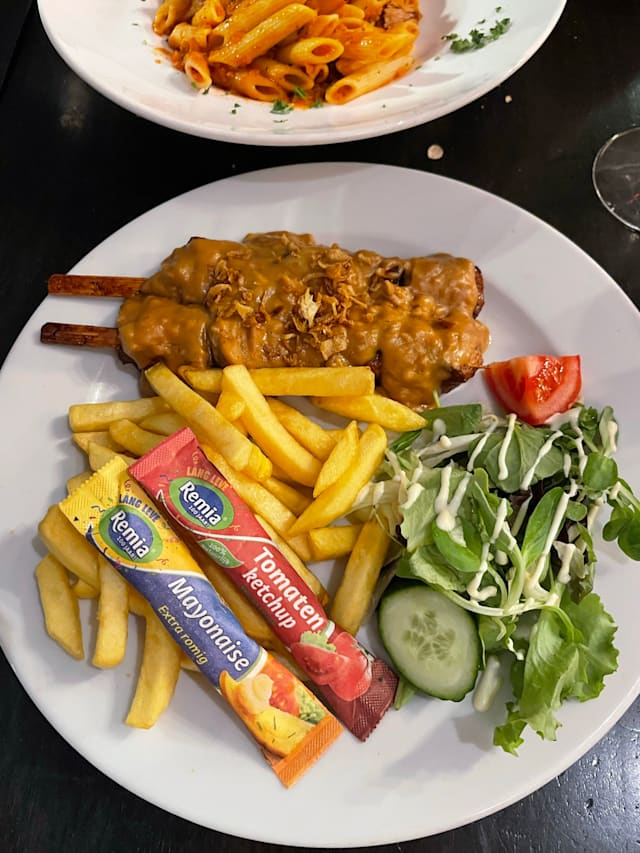 3.5/10No idea why this place has such good reviews.. mediocre at best. Friendly staff and fairly quick service but if I hadn’t gotten the 50% Fork discount and had kids with me that only likes basic food I would have left very disappointed.. the food/menu is very plain. Dutch old school bar food with no frills or joy. Nothing seems made from scratch, condiments in sachets like in fast food places, very dirty salt/pepper grinders on the tables and yeah, it’s a tourist restaurant I guess. Struggled to choose anything on the very boring menu and settled for burgers. Was ok, very few vegetables and very little fries to go with and again, super basic. And if no discount very high prices.