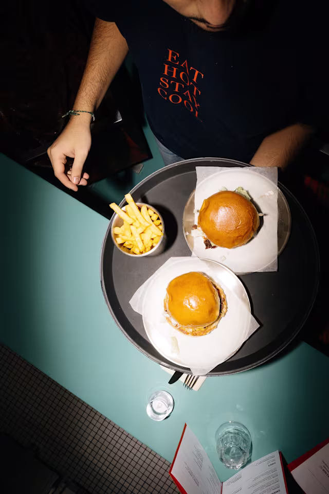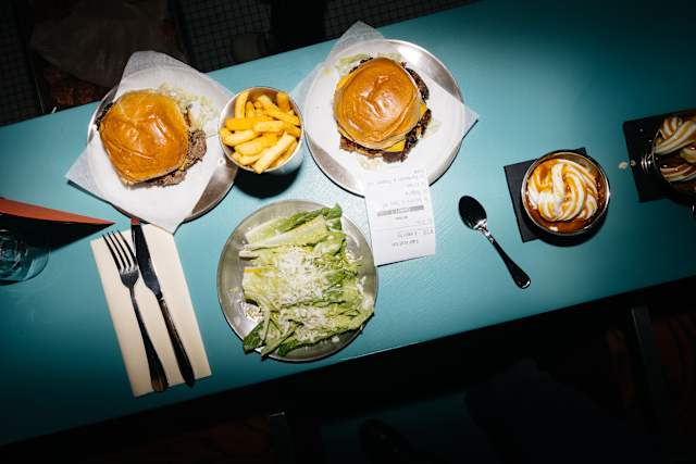 - Potato bun, double dry aged beef, crispy bacon, caramelized onions, american cheese, lettuce & ketchup.