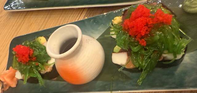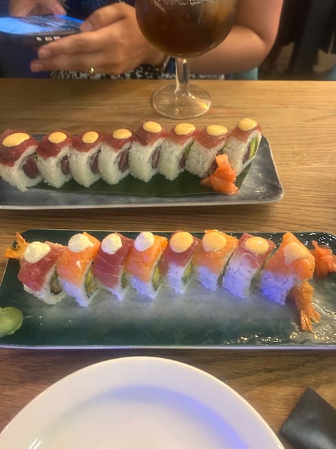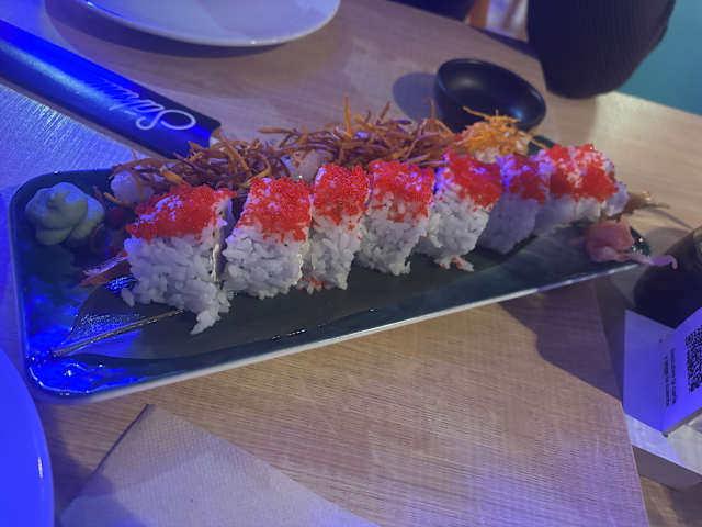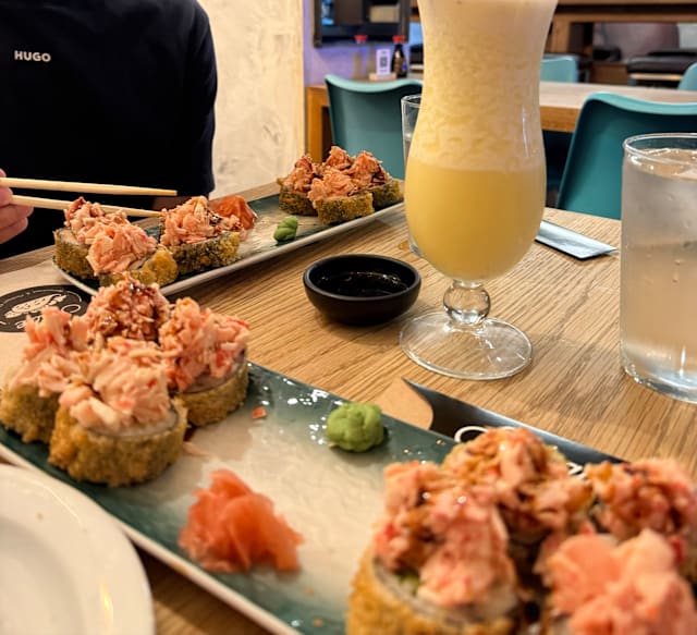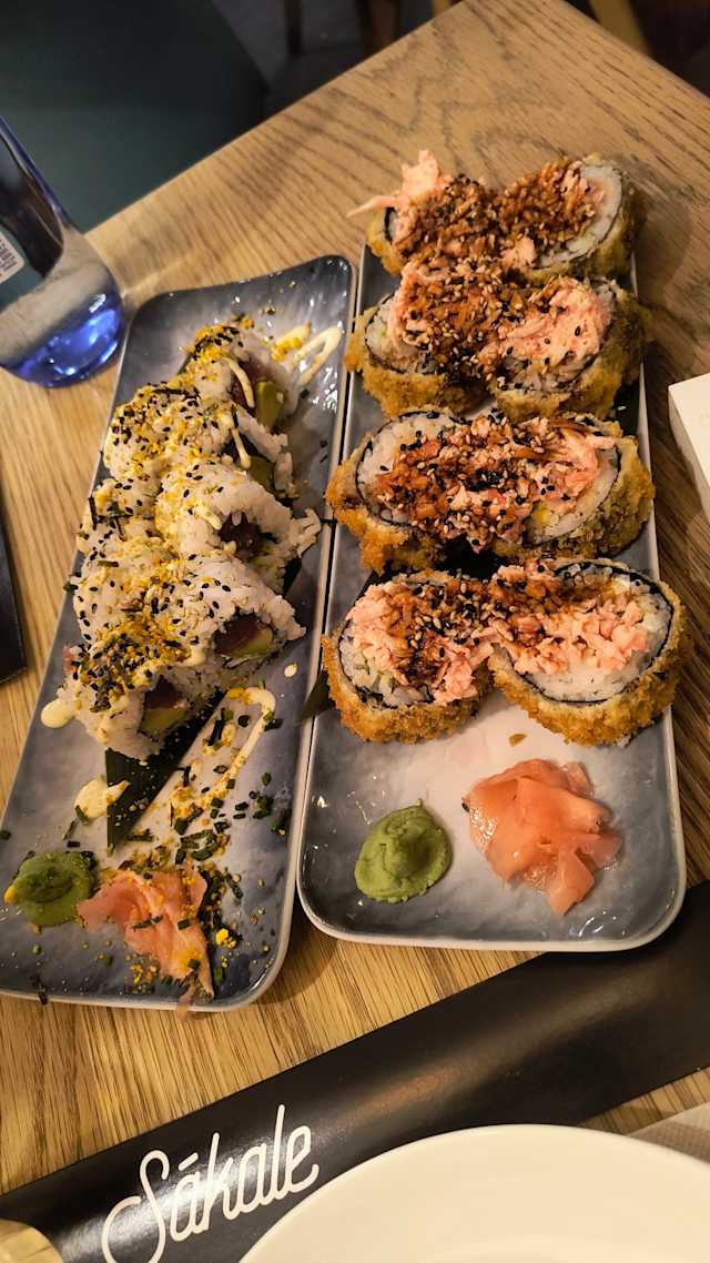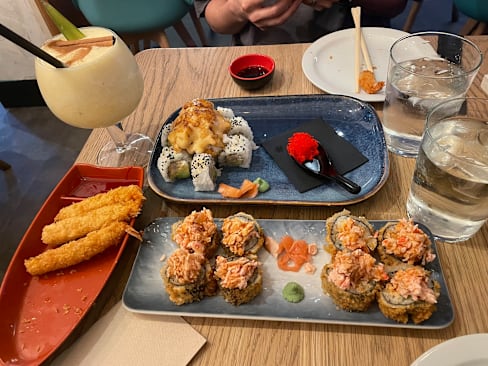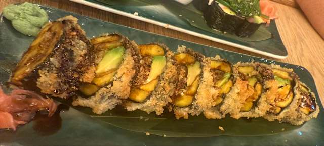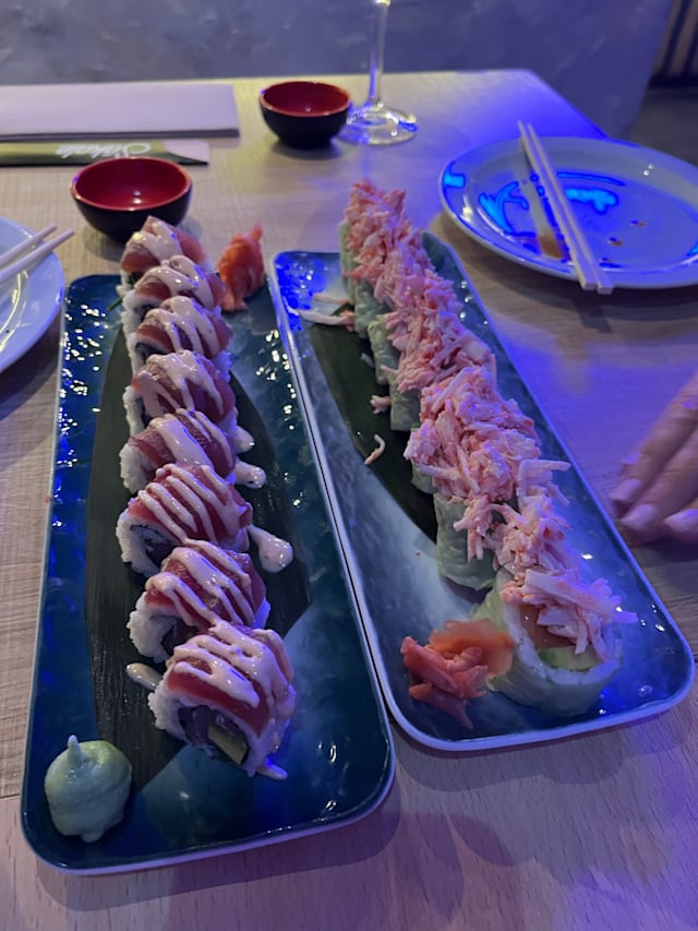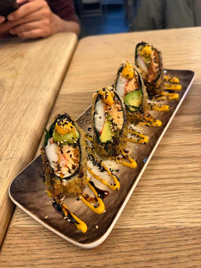 5.5/10I expected better sushi. The tempura wasn’t crispy enough and the roll was falling apart. Also the order took more than 40 minutes to arrive and it was just two rolls.