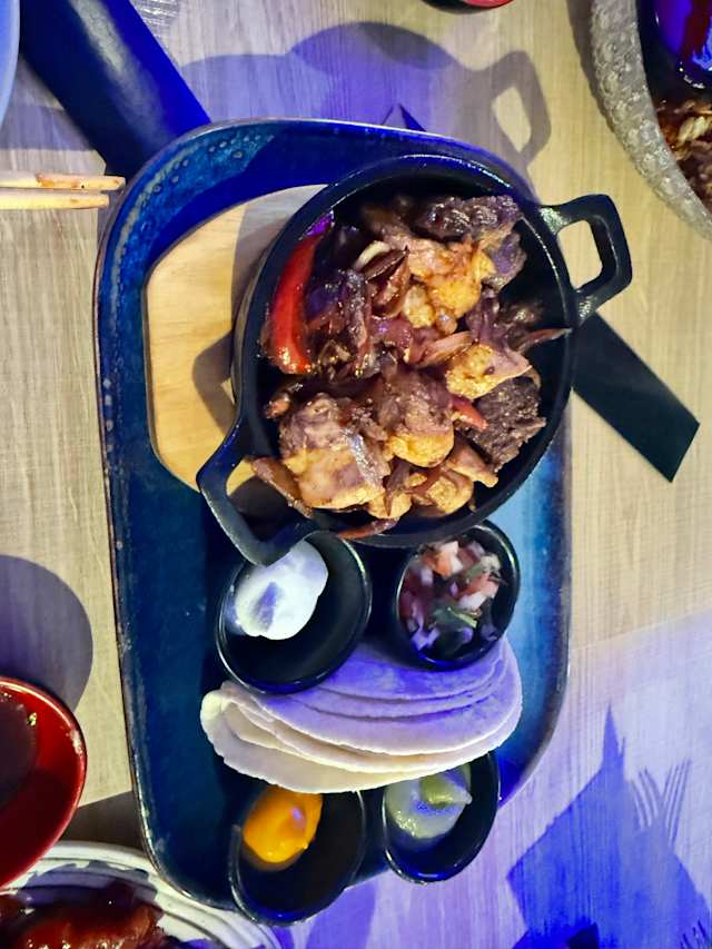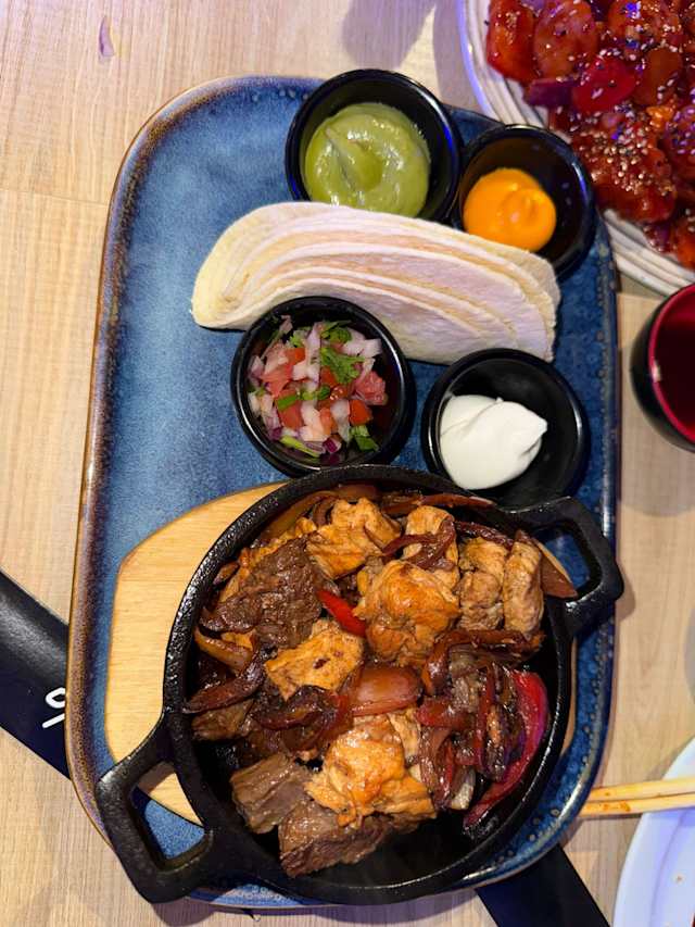 9/10The Japanese food was excellent. We had prawn tempura (the batter was perfect!), and steamed gyoza. The margaritas were also very good. Unfortunately, the mexican food was disappointing. We shared the fajitas, the food was only like-warm, and the dips tasted like they were not freshly prepared. We would go back for the Japanese and margaritas, but not for the Mexican food.