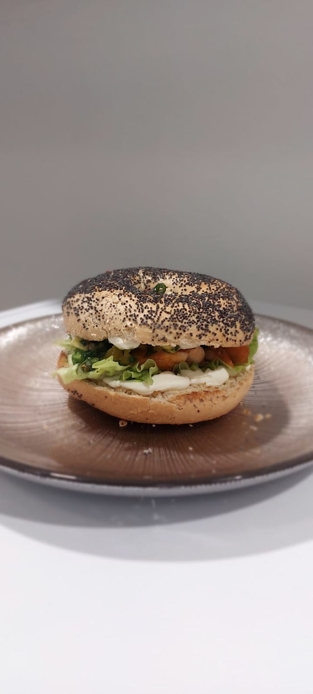 Panino bau, stracchino, mix di verdure saltate, scorza e succo di lime