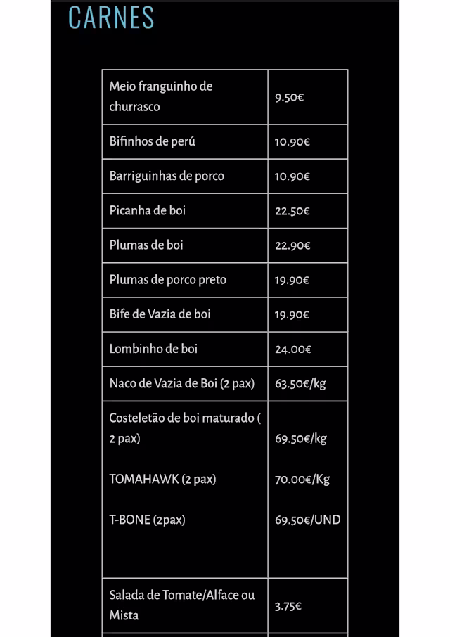 We arrived around 12h45 and they told us they didn’t have grilled chicken, in a “churrasqueira”. Then the food took more than 40 mins to arrive with no warning provides to us. For 2 dishes of turkey breast and one bacalhau the bill was 100.. not worth the money.