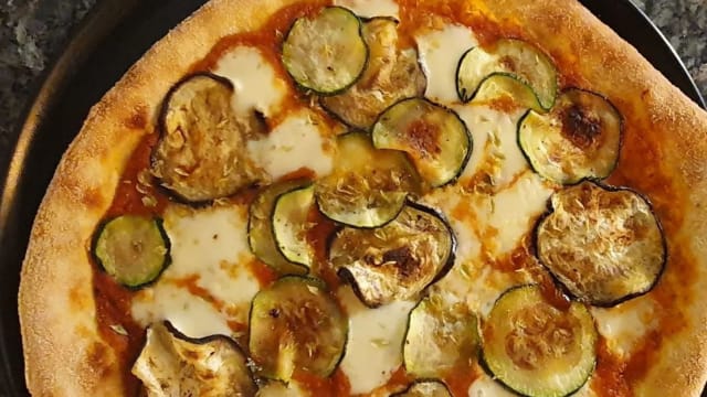 Tomate, mozzarella fior di latte, queijo de cabra e salame picante ventricina (ou nao picante)