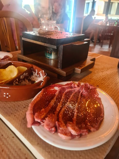 9.5/10We wanted to go out to eat for a steak dinner and if that is what you want then it is perfect. The staff were friendly and attentive and although it was very quiet (early on a Monday evening) the place had a good atmosphere. For less than 20€ all you can eat steak which you cook yourself at the table, with limitless rice, beans and coleslaw really good value. Right by the beach too. Perfect for carnivores