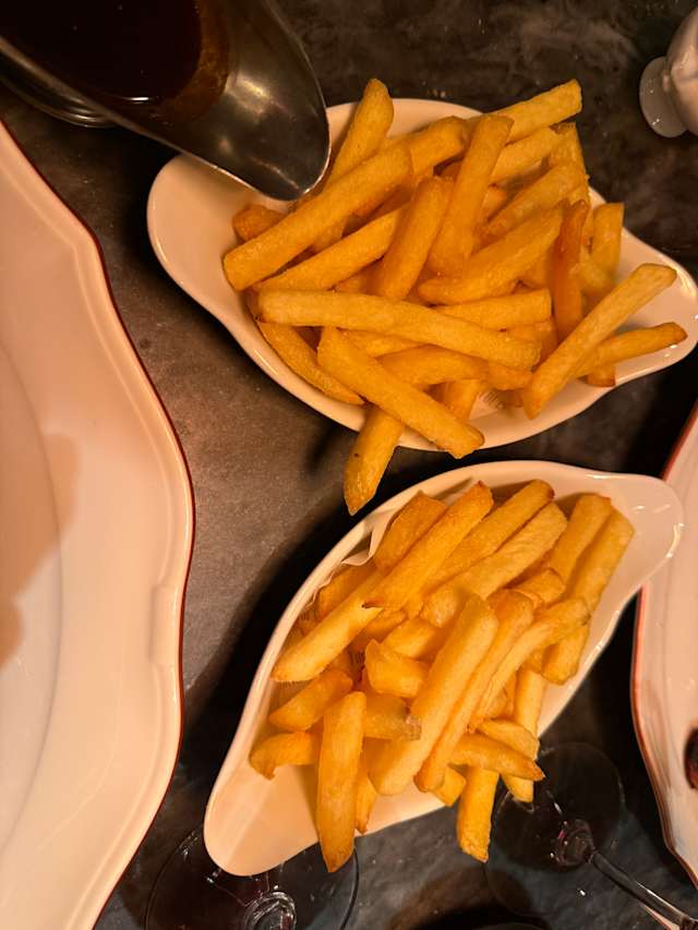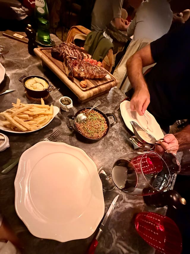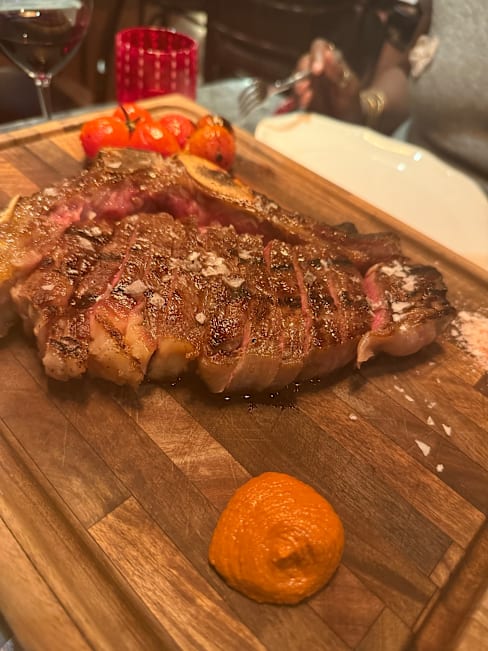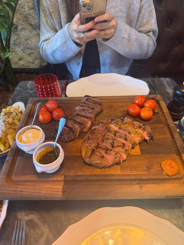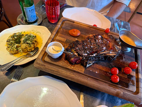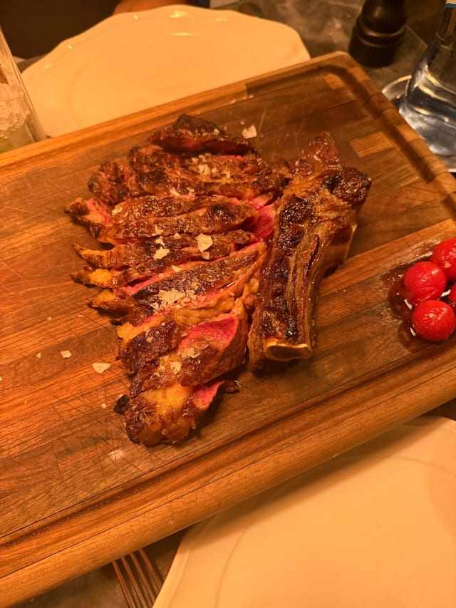 6/10This is a beautiful restaurant with a great atmosphere, but it’s significantly overpriced for the quality of the food. Entry-level steak dishes start at €40, yet my sirloin was tough, under-rested, served too rare despite requesting medium, and lacked flavor. As a South African who values well-prepared meat, this was disappointing. My partner and I each had a 200g steak with vegetables, shared an entrée and dessert, had two glasses of sparkling wine and one bottle of wine — the bill came to €235. The quality simply doesn’t justify the cost, and there’s a clear price-to-quality mismatch that needs attention.