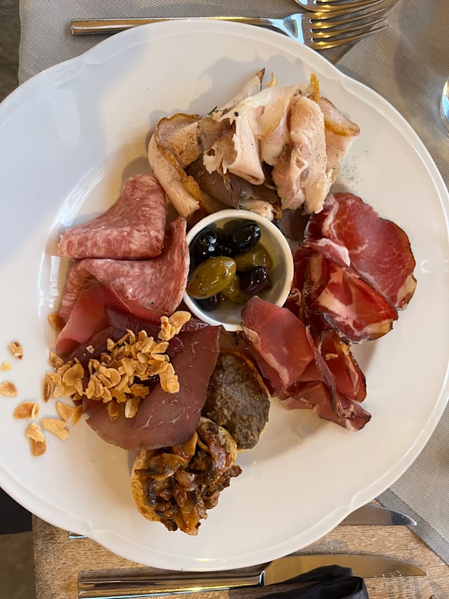 10/10Very comfortable relaxed setting outdoors in the shade. Really nice courteous service. Exceptionally fresh antipasti with cold cuts and salami. For a quick lunch we finished off with paccheri pasta with cherry tomatoes and aubergine pasta. Fork discount applied immediately and correctly