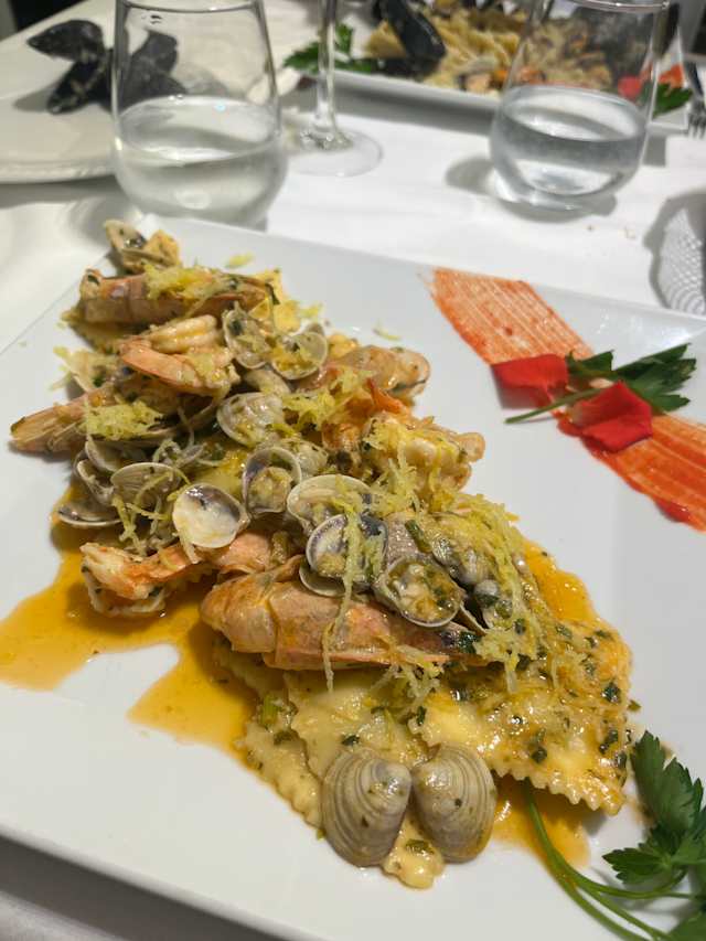 - Ravioli ripieni con ricotta, gamberi e lupini al limone