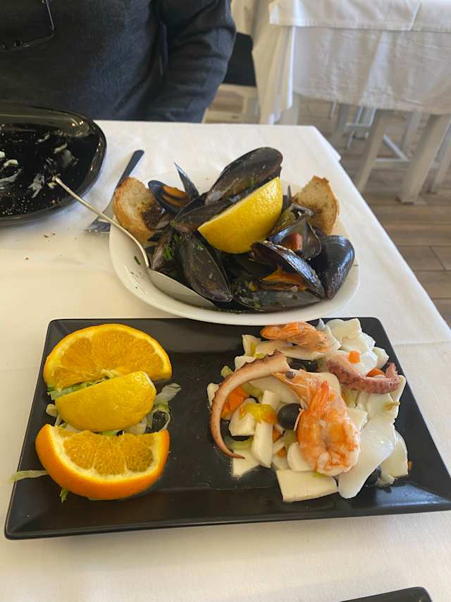 - Scampi, gamberi, calamari, filetto di orata o spigola
