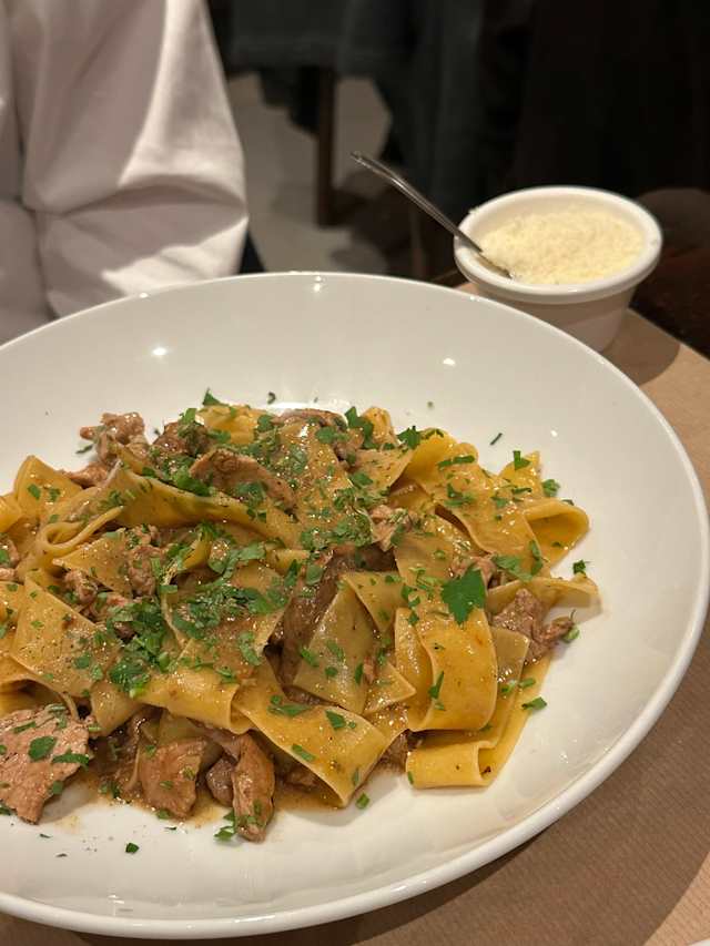 10/10Our table was booked for 7.30pm and the restaurant was empty.. there were some diners sitting outside. We were welcomed and we chose ricotta and spinach ravioli which was amazing, and a black truffle Rigatoni with palma ham... again, another good choice. Portion sizes were perfect. By the time we'd finished eating another 4 groups had come into the restaurant creating a lovely atmosphere. We had a lovely evening.